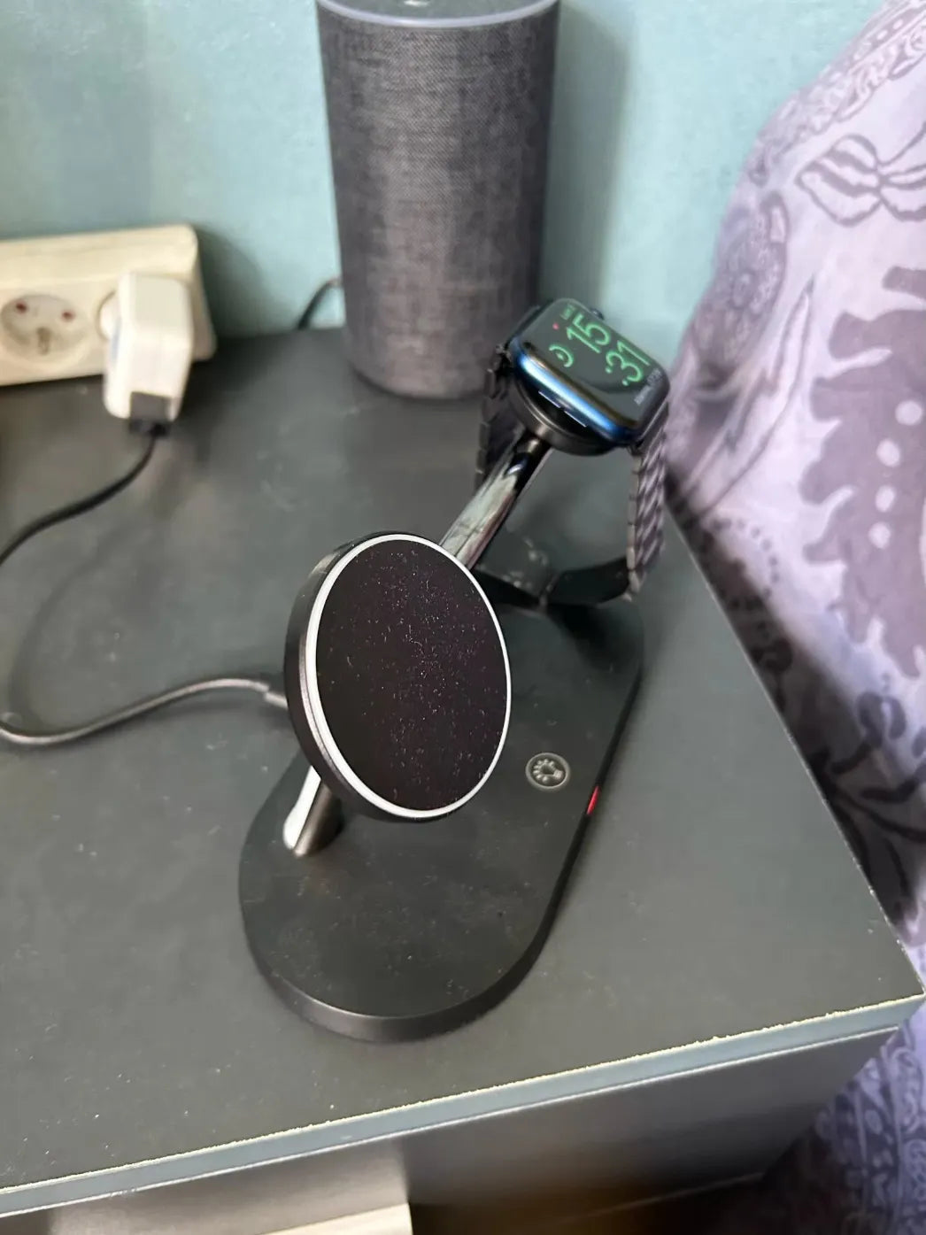 This charger is incredible. My nightstand is always organized now, and charging my iPhone, watch, and AirPods has never been easier. This tech gadget is truly impressive.